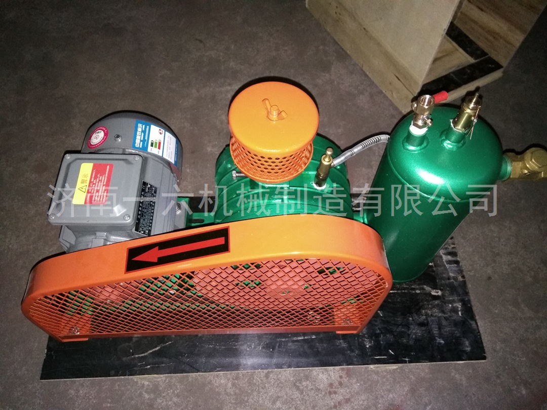 一六回轉式鼓風機結構精巧,主要由下列六部分組成:電機、空氣過濾器、鼓風機本體、空氣室、底座(兼油箱)、滴油嘴。鼓風機靠汽缸內(nèi)偏置的轉子偏心運轉,并使轉子槽中的葉片之間的容積變化將空氣吸入、壓縮、吐出。在運轉中利用鼓風機的壓力差自動將潤滑送到滴油嘴,滴入汽缸內(nèi)以減少摩擦及噪聲,同時可保持汽缸內(nèi)氣體不回流。